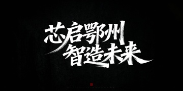 创意字体“芯启鄂州 智造未来”,文字在一排,白色字体,张扬的字体设计,采用未来感十足的风格,笔画以硬朗的直线和几何图形构成,部分笔画带有硬件元素镶嵌,展现出科技的前沿与创新,黑白色调,极简主义风格,不要出现相同字