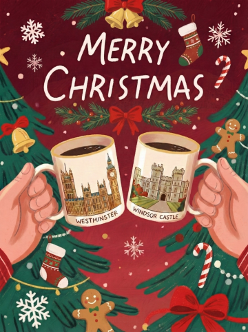 鎏金风圣诞树闪耀星辉,插画与粒子交织,营造梦幻奢华的节日氛围,光影与体积感强化喜庆温馨,超级符号“MERRY CHRISTMAS”点亮冬日序曲。