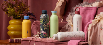 清新自然的户外场景中,四款简约金属质感保温杯以性冷淡风与轻拟物设计呈现,柔和色调搭配实景光影,传递舒适与高级感。