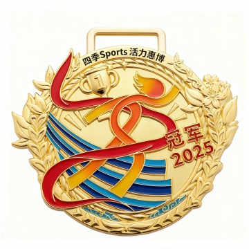 一枚金色的圆形奖牌,正面为光滑无图案的圆形区域,边缘有精致的双层花纹装饰,内层为螺旋状绳索纹,外层为细密的点状凸起边框,奖牌顶部有一个金色的金属挂环,连接着一条鲜红色的绸缎绶带,整体呈现出高度写实的3D质感,金属表面有细腻的拉丝纹理和自然的光影反射,高光处明亮耀眼,阴影部分过渡自然,背景为纯白色,简洁干净,突出奖牌的主体地位,材质改为青铜,呈现出古朴厚重的金属质感,表面带有轻微的氧化色泽和磨砂触感。