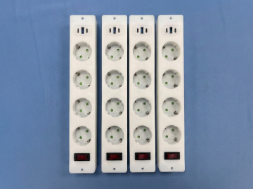 将两张图里面的的电源盒产品,合在一张图里面,摆放方式,一个向右倾斜,一个向左倾斜,并变成白色背景