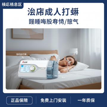 帮我生成5张不同的淘宝推广创意图,要求场景是睡眠环境、床边。主文案:治疗成人打鼾,副文案:睡眠呼吸暂停/憋气