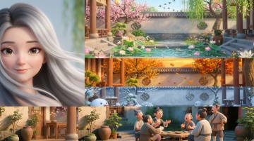 软3D风可爱卡通女孩,身着古风服饰,色彩柔和,童趣盎然。