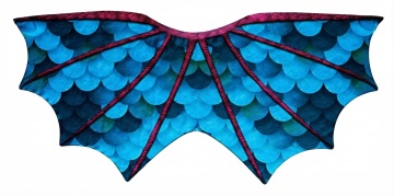 梦幻感与神秘感交织的插画风龙翼,采用重拟物风鳞片纹理与描边风线条,蓝紫渐变色调呈现虚拟自然之美,玻璃风光泽增添酷炫质感。