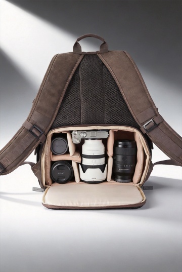 现代简约风格,清新舒适实景感,书桌上的粉色背包与文具,展现学习的温馨氛围。