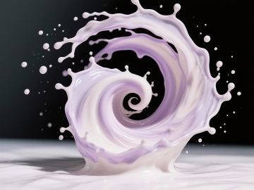 六个不同造型与角度的牛奶飞溅瞬间,完全透明的纯净液体质感,高光与阴影细节丰富,呈现立体写实的摄影风格,以纯色背景为衬托,整体色彩统一变换,所有飞溅形态规整排布形成系列素材集合