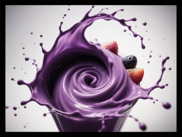 白色背景上,蓝色液体以流畅动感的弧形从左下角向右上方飞溅,形成充满活力的动态曲线,细小的蓝色液滴与较大的水花在空中四散,晶莹剔透的冰块被蓝色液体包裹、冲击并随飞溅轨迹散落,冰块棱角分明,表面有自然的反光,液体边缘呈现出清晰的高光与半透明渐变效果,整体画面光影对比强烈,色彩纯净明快,展现出液体飞溅瞬间的爆发力与冰爽质感。
