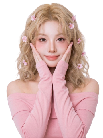 一张特写人像摄影,柔和的光线从左上方照射,营造出温馨梦幻的氛围。画面中女性闭着双眼,面部肌肤白皙细腻,脸颊和眼角点缀着精致的粉色花瓣、小巧的珍珠和闪亮的水钻装饰,形成自然散落的美感。她的妆容变换为冷调烟熏妆,眼窝处用深灰色和银色眼影晕染,眼线细长上扬,睫毛浓密卷翘,唇色改为哑光正红色,凸显冷艳气质。她的手轻轻托着脸颊,指甲变换为黑色磨砂底搭配银色几何线条和菱形水钻的美甲样式,指尖还点缀着小巧的金属链条装饰,整体造型融合了冷艳与精致的风格,背景中散落着透明的蝴蝶装饰,增添灵动飘逸感,画面整体色调在保持柔和光线的同时,通过妆容和美甲的冷色调形成对比,突出变换后的妆造主题。