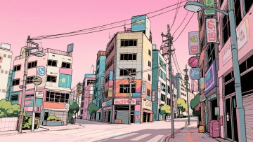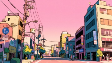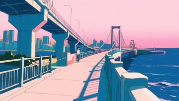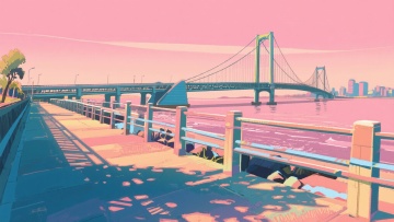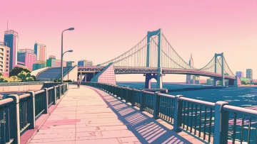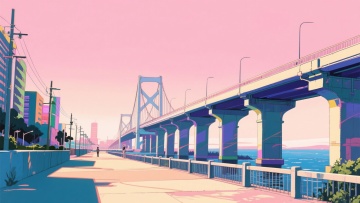 二次元,浪漫,约会,城市,海边,桥边,天空,不要人物,生成10张,细节丰富,元素多彩,浅粉色,不要人物