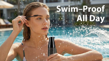 清新自然的杂志风画面,金发卷发女孩在蓝天白云下微笑,展现清爽透亮的肌肤质感,搭配简约双色设计与光影感,传递时尚舒适的防晒体验。