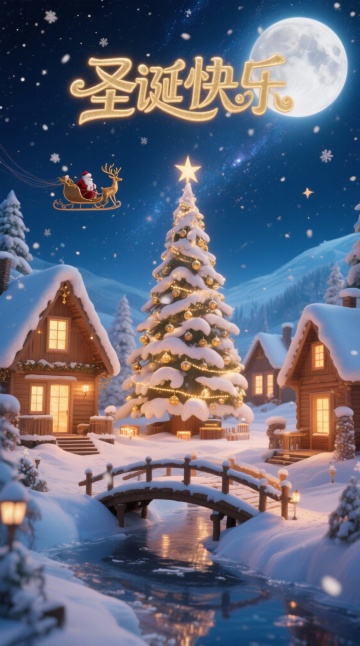 鎏金风圣诞树闪耀梦幻光芒,3D质感与粒子光效交织,营造奢华喜庆的虚拟自然场景,光影流动间尽显节日浪漫。