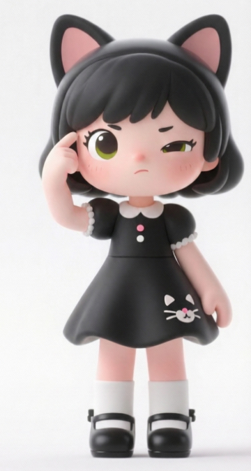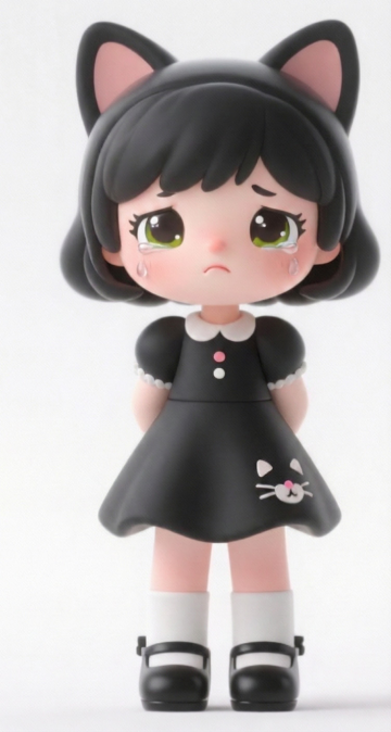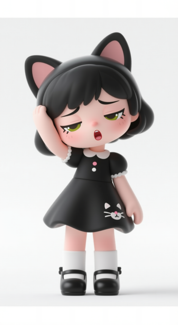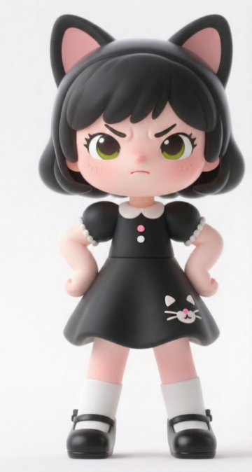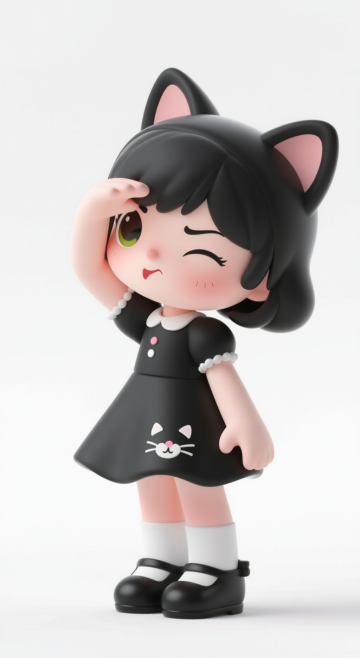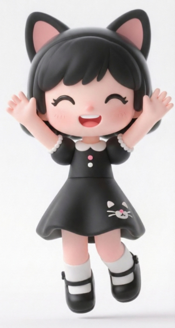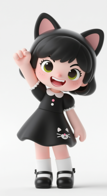3D卡通风格,拟人化猫咪少女,毛发生长自然,可爱温馨室内场景。