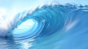 清透蓝波卷起浩瀚,3D液态风与光影交织,重拟物手法呈现虚拟自然的宽阔感。