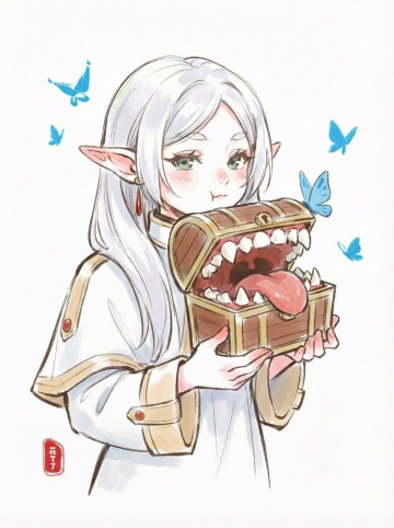 中国风二次元动漫风格,一位身着红色与金色渐变飘逸古风长裙的少女,长发如墨色瀑布般垂落,发间点缀着金色凤凰发饰,右手掌心托着一朵燃烧的金色莲花,莲花周围环绕着红色火焰光晕,左手自然舒展,裙摆与长发随风飘动,姿态轻盈灵动,面部表情温柔恬静,眼神清澈,整体线条流畅细腻,色彩鲜明且具有层次感,光影柔和,背景为纯白色,无其他元素干扰。