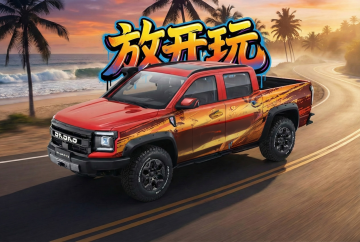 根据图片车型设计出露营风格的皮卡车 背景设计成露营地 加入露营元素,加入文字“和大道一起 热爱生活!”