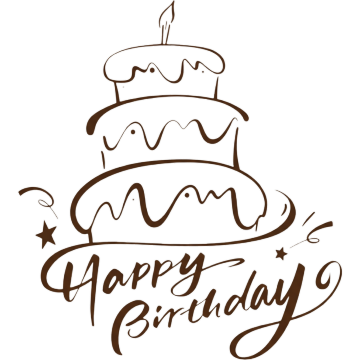 纯黑色线条绘制的三层生日蛋糕插画,顶层有一根点燃的蜡烛,每层蛋糕边缘有滴落状奶油装饰,蛋糕下方环绕着优雅的手写体"Happy Birthday"文字,文字周围点缀着星星和卷曲的丝带装饰,整体风格为简约卡通手绘,线条流畅自然,保持纯色背景,变换为波普艺术风格,增加鲜艳的色块填充和粗黑轮廓线,文字采用更具装饰性的艺术字体,保留原有蛋糕和元素布局但赋予更强烈的视觉对比和现代感。