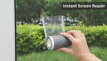 以图中的窗纱修补胶带为元素,物体主体特征不变,设计6张跟窗纱修补胶带有关的图,可以适当加一些英语文案点缀一下,比例 「16:9」