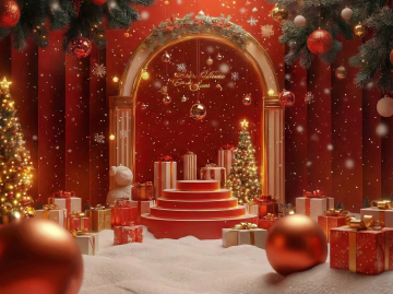 3D微缩艺术风圣诞礼盒,玻璃质感透出暖光树与雪人,鎏金蝴蝶结点缀,卡通童趣堆雪人,烟花绽放夜空,喜庆梦幻温馨满溢。