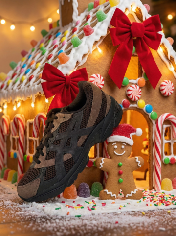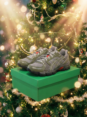 复古风灰色绒面皮鞋,置于毛绒地毯与圣诞装饰中,暖炉映衬,轻拟物设计融合面料质感,营造冬日温馨舒适氛围。