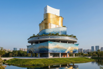 梦幻感与国潮风交融,中式古塔以毛发生长风呈现彩虹色,重拟物与浮雕设计凸显喜庆卡通感,传统建筑焕发奇幻新貌。