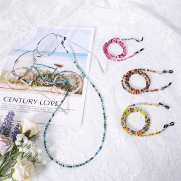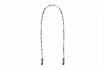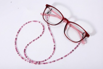 将图片一中的眼镜的链子换成图片二中的链子,图片中的链子细小点,保持图片一中眼镜链子的形状