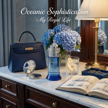 奢华感与优雅感交织,3D风玻璃展盒搭配金属质感瓶身,鎏金细沙与柔光丝缎烘托现代清透氛围,光影流动间尽显时尚格调。