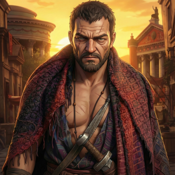 热血感十足的古典武士,手持血刃,战场硝烟中展现超现实主义的故事感。
