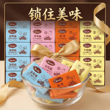 扁平风卡通包装,拟人蛋黄角色萌趣互动,双色设计突出低糖健康理念,印刷风文字强化促销信息,整体充满可爱感与节日喜庆氛围。