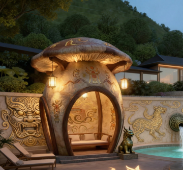 系列集合包含四个不同元素内容的插画,每个插画均为Q版卡通风格的建筑,保持相同的半侧面视角、等距透视和精致细节,整体排布规整对称;第一个建筑为日式町屋,深棕色木构搭配灰黑色瓦顶,点缀红色灯笼与绿色植物,纯色浅米色背景;第二个建筑为中东城堡,土黄色墙体配蓝色穹顶与尖拱窗,装饰几何纹样与彩色玻璃,纯色浅橙色背景;第三个建筑为东南亚高脚屋,棕褐色竹木结构配棕榈叶屋顶,悬挂藤编灯饰与织物,纯色浅绿色背景;第四个建筑为北欧木屋,白色墙体配深灰色坡顶,装饰驯鹿雕塑与雪花纹样,纯色浅蓝色背景;所有建筑均具有类似的体积感、圆角处理和生活化细节(如门前陈设、植物装饰),保持统一的光影效果(柔和顶光、轻微阴影)和材质表现(木质纹理、砖石质感),整体风格统一且色彩协调。
