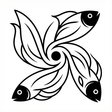 纯黑色钢笔手绘风格的锦鲤,保持白色纯色背景,鲤鱼呈向上跃动姿态,头部微微抬起,嘴巴自然闭合,鱼鳞以细腻的交叉排线表现出层次感和立体感,鱼鳍边缘线条流畅且带有飘逸的弧度,整体造型充满力量感与动态美,线条粗细变化丰富,细节刻画精致,具有复古插画的艺术韵味。