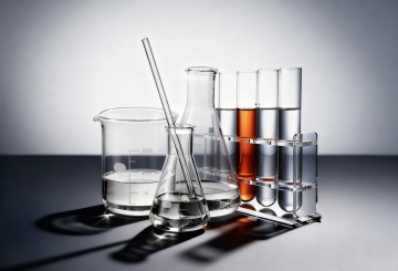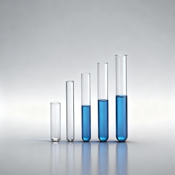俯视角构图,极简主义实验室工作台面中央,一只戴着无菌白色丁腈手套的手正以毫米级精度操控着一支尖端极细的石英微量移液器,透明的液体弯月面在吸头末端形成完美的半球体,正悬停在一支刻有金色刻度线的硼硅酸盐玻璃试管正上方2毫米处,试管内装有三分之二体积的淡蓝色荧光溶液,底部沉淀着细密如星尘的白色颗粒,周围环绕着五只排列成正六边形的相同试管,每只试管内液体呈现出从浅蓝到靛蓝的渐变层次,背景是被柔和白光均匀照亮的浅灰色环氧树脂台面,左侧放置着一个带有蓝色LED指示灯的小型离心机,右侧是半开的磨砂玻璃试剂瓶,整个画面采用高对比度的蓝白灰三色系统,8K超高清分辨率捕捉到手套纹理和液体表面张力的微妙变化,浅景深使所有元素聚焦于移液动作的黄金分割点,营造出冷静、精准、近乎仪式感的科学美学。