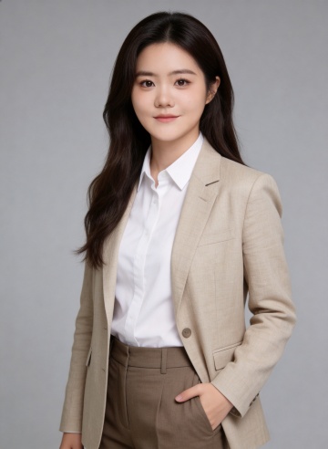 商务感十足的性冷淡风肖像,简约主义构图,面料质感细腻,实景拍摄呈现专业气质。