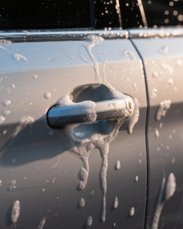 图中是暖气片除尘掸子,用图中产品生成场景,场景为:汽车内饰椅子灰尘打扫,有人拿着该产品打扫车内卫生,打扫过的位置和没有打扫过的位置有轻微灰尘和干净的对比,保持产品一致,比例为1:1,生成四张