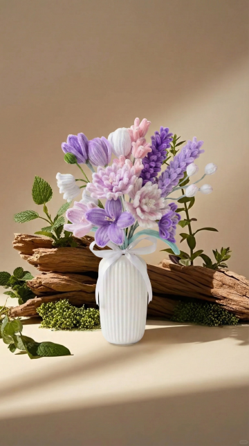 帮我把第一张图中的花束,替换掉第二张图中的花束,融合自然,比例协调,光线柔和