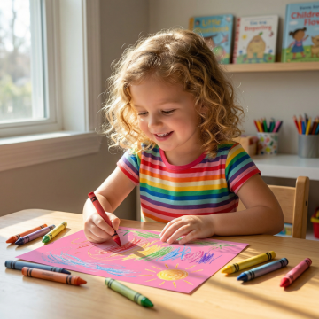 东亚风实景感画面,柔和光影洒落,孩童专注书写,手账风与水彩质感交织,营造温馨舒适、清新质朴的居家学习氛围。