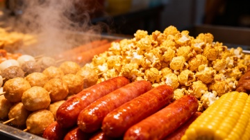 关东煮,烤肠,玉米,热饮等琳琅满目的美味汇聚一起