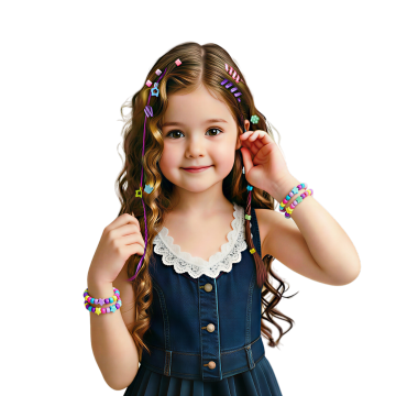 不改变脖子上的黑色围脖,把人物改为欧美白人女儿童,短卷发,蓝色的衣服改成连衣裙,白底图