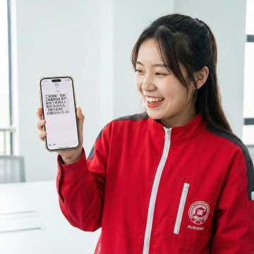 按照帅气小伙一样的穿着,再生成一张领薪图:一位穿着澳盛工衣的50岁的清洁工站在载着装了半整理箱水的手推车和拖把旁咧着嘴看工资到账短信(金额写6500元)
