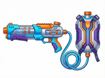 未来感科技枪械,卡通插画风,描边轻拟物设计,塑料质感,清新配色,充满童趣与科幻气息。