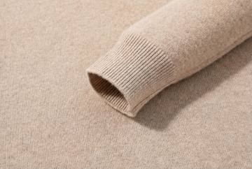 柔和米黄色针织面料的细腻纹理特写,布料呈现自然流畅的波浪状褶皱,光线从斜上方柔和洒下,形成温暖的明暗过渡,展现出面料柔软轻盈的质感与细腻的横向纹路肌理,整体画面简洁纯净,营造出舒适宁静的氛围,适合作为背景使用。