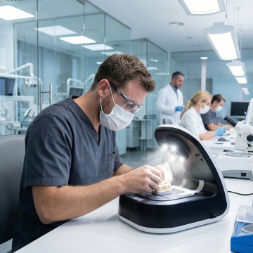 医疗科技感背景,高清写实风格,以蓝色和白色为主色调,柔和明亮的光线从上方照射,营造出洁净、专业、充满希望的氛围。画面中心可替换为不同形态的医疗场景元素,如:显微镜下的细胞结构、DNA双螺旋模型、手术器械特写、药剂师调配药物的手部动作、医学影像图(CT、MRI)的可视化呈现、疫苗研发实验室的精密仪器、医护人员身着防护服的背影、智能医疗设备的界面展示等。背景融入半透明的六边形几何图形、数据流线条、分子结构模型等科技元素,采用虚实结合的构图,前景元素清晰锐利,背景元素带有轻微的模糊和光晕效果,增强空间层次感和科技感,整体设计需保持信息传达的清晰高效,符合医疗行业严谨、创新、关怀的专业形象。