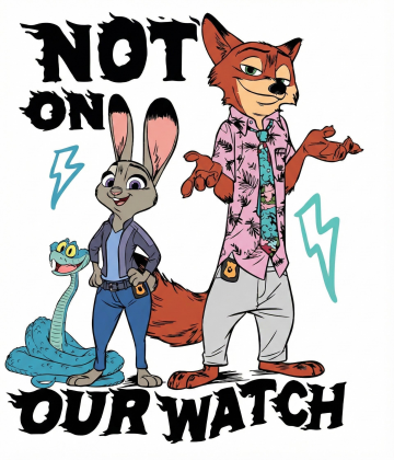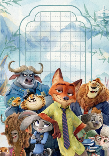 卡通感十足的3D拟人动物警官,撕纸风拼贴背景,融合城市街景与报纸碎片,营造出趣味十足的节日氛围。