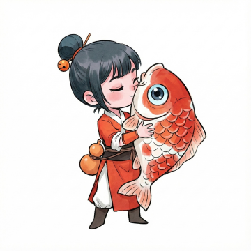 古典中式插画风,水墨山水背景,人物手持折扇,尽显雅致韵味。