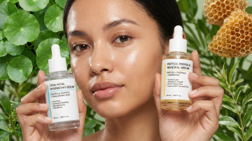 现代感3D风设计,轻拟物玻璃瓶简约主义,展现高端护肤品质。