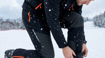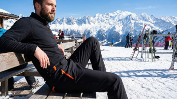 以图中的男士滑雪裤为元素,欧美男人穿着滑雪裤,适合冬季运动,物体主体特征不变,设计6张跟男士滑雪裤有关的图,比例 「16:9」
