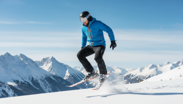 实景感与光影交织,滑雪者疾驰雪原,动感十足。大字风标语“让冬日飞扬!”搭配粒子飞溅效果,传递热血与酷炫的运动风,尽显冬日清爽与时尚张力。
