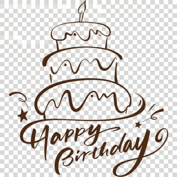 纯黑色线条绘制的三层生日蛋糕插画,顶层有一根点燃的蜡烛,每层蛋糕边缘有滴落状奶油装饰,蛋糕下方环绕着优雅的手写体"Happy Birthday"文字,文字周围点缀着星星和卷曲的丝带装饰,整体风格为简约卡通手绘,线条流畅自然,保持纯色背景,变换为波普艺术风格,增加鲜艳的色块填充和粗黑轮廓线,文字采用更具装饰性的艺术字体,保留原有蛋糕和元素布局但赋予更强烈的视觉对比和现代感。
