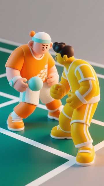 软3D风熊猫拟人化设计,手持乒乓球拍,可爱卡通风格,展现运动乐趣。