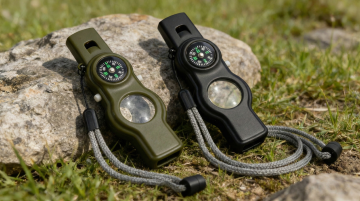 将参考图中的黄色设备,通过挂绳和黑色金属登山扣,悬挂在一根黑色的杆状物(如帐篷杆)上