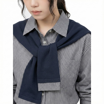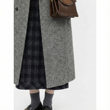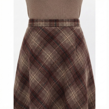 简约主义风格,暖色系条纹毛衣搭配深棕A字裙,质感面料与自然光影营造优雅舒适的实景氛围,传递质朴而高级的秋日穿搭美学。